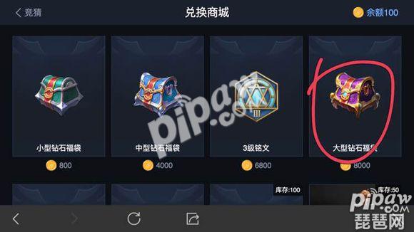 去竞猜兑换商店,选择大型钻石福利,打开就可以获得大量钻石,数量上百哦。