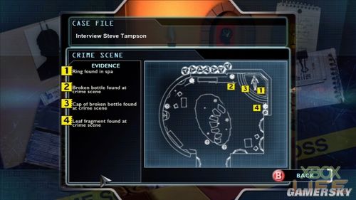 这一关中有许多迹证是相同的,因此互相比较一下往往就会让剧情有所进展。如果你比对了其中几个,但还是会有一种卡关的感觉的话,试着把所有一样的迹证完整交叉比对一次。惟一的例外是Manoto的指纹,虽然之前已经在裂缝填补剂上采到一枚,但后来汽油桶上那枚没法跟这枚来比,只能透过资料库再找一次,这样做有可能会扣掉Skill分数。