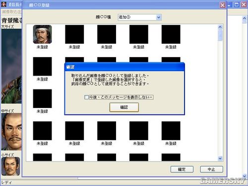 接着读取你所要增加的CG,依次放进大中小方格,注意:在这里中跟小的CG可以直接使用大CG的图,然后里头有方框可提供缩放修改,有必要说明的是,使用大图去改中小图缩放可能会产生的颗粒感(与本多一代出来时一样),所以另外去做其他两张就不会有这种情形(革新小图56x70,天道60X60,使用革新CG时请注意喔!)