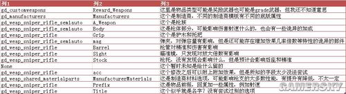 这里有个小窍门,寻找游戏目录下的..WillowGameLocalizationINT目录,里面的gd_weapxx之类的文件里面以文本形式记录了有所有部件的名称,以及对应所组合武器时会出现的前缀