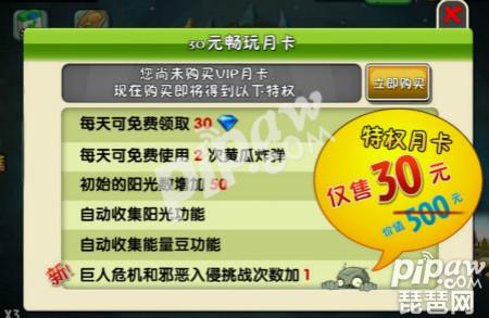 月卡是植物大战僵尸2新上线的VIP套餐,那么植物大战僵尸2月卡值得买吗?针对玩家们的这个问题,小编为大家分享下,想了解相关资讯的玩家一起往下看哦。