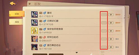 2、这个时候进入好友界面,选择一个好友,点击后面的省略号,然后就可以看到一个加黑名单和移除好友,玩家直接选择其中一个就可以:
