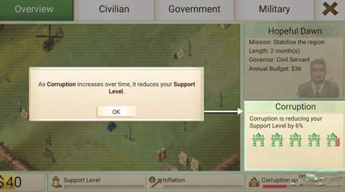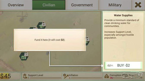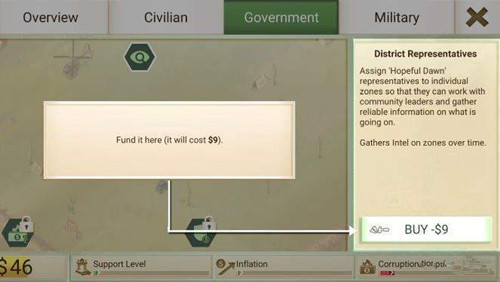 (4)在下方,钱的右边可以看到你的支持度得到了显著提升。你的举措会对整个地区生效——但它们是在区域间随时间推行的。