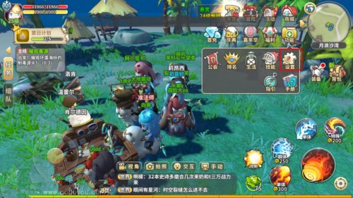 1、打开游戏进入首页,点击右上角的【功能】按钮,然后在二级菜单栏中选择【设置】选项:
