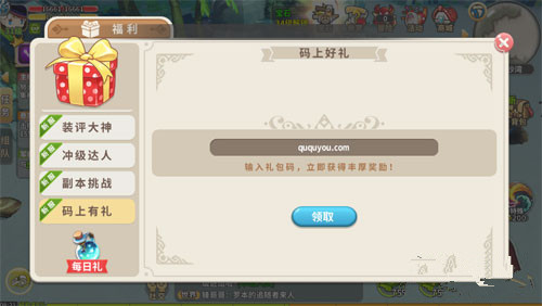 3、之后输入礼包码,点击领取就可以获得丰厚奖励了:
