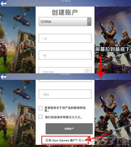 3、在弹出的创建账号页面中,拉到最底下,就能看到“已有Epic Games账号?”,选择登入: