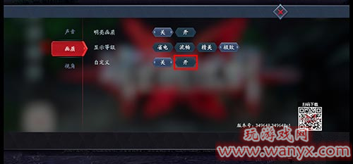 2、进入设置页面以后,选择【画质】,点开【自定义】后面的【开】:
