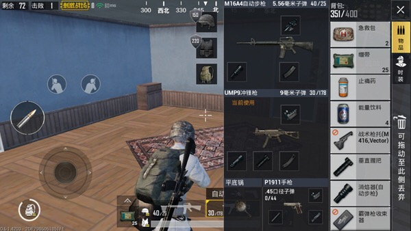 2、看到合适自己手里枪械的配件,直接安装到枪械上,就不要往背包里放啦,捡来就是用的,干嘛收起来呢;
