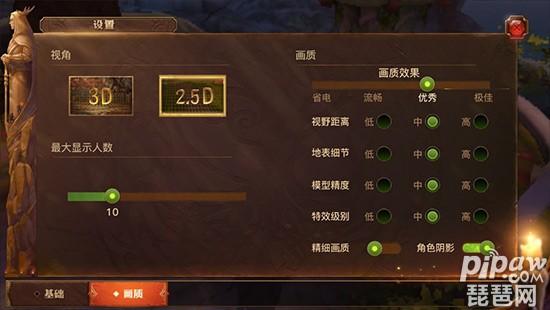 在画质设置界面上可进行3D和2.5D切换,默认是3D模式,这里先来说下2.5D和3D差别。